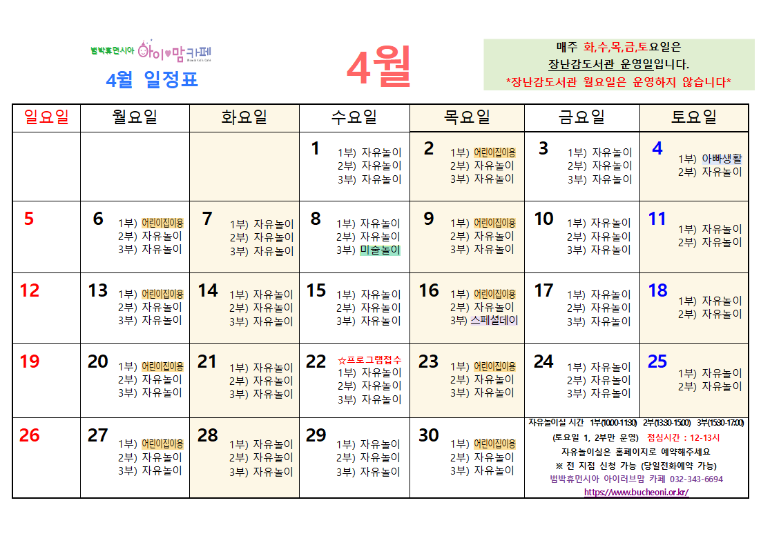 [범박휴먼시아] 4월 프로그램 일정표