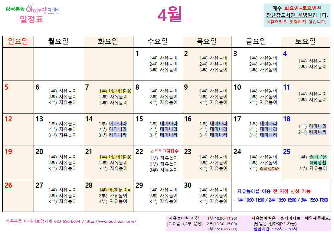 [심곡본동] 4월 프로그램 일정표