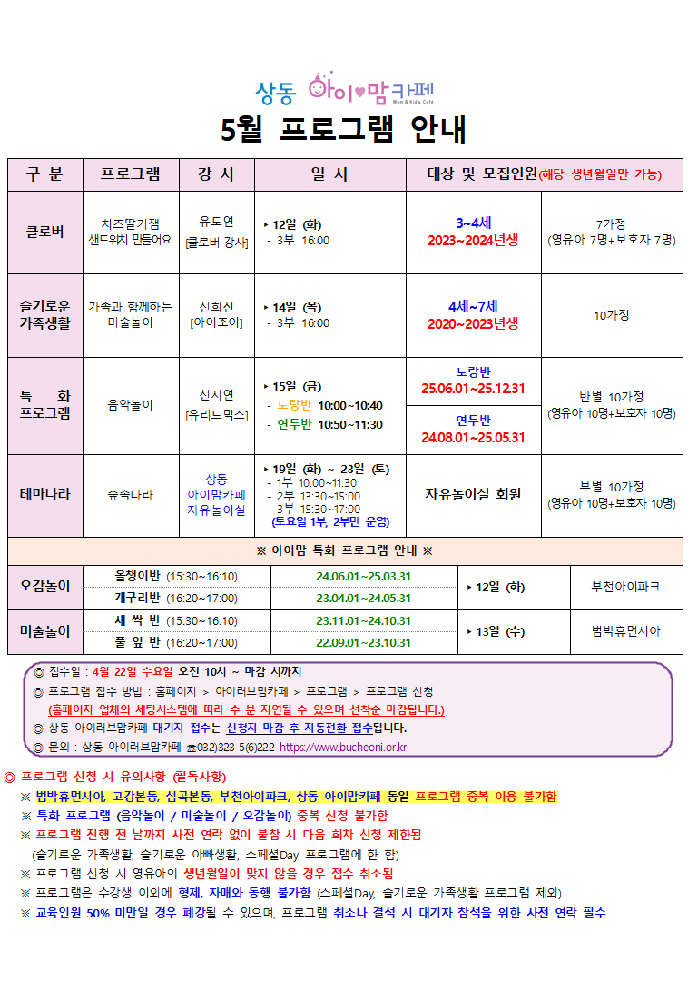 5월 프로그램 안내문 및 일정표