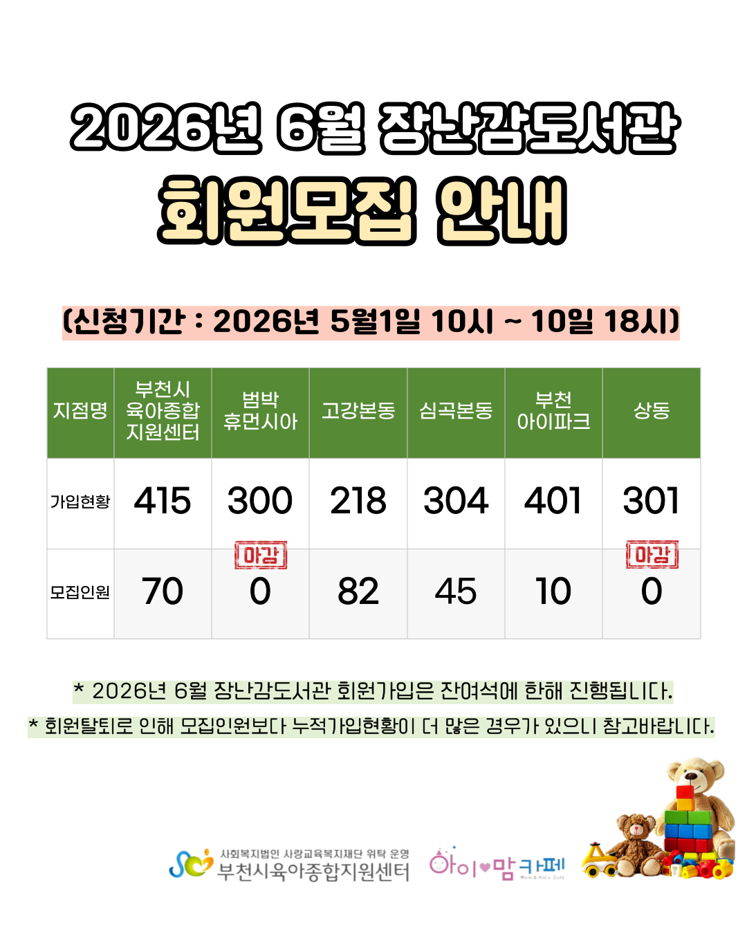 [부천아이파크] 2026년 6월 장난감도서관 회원모집 안내