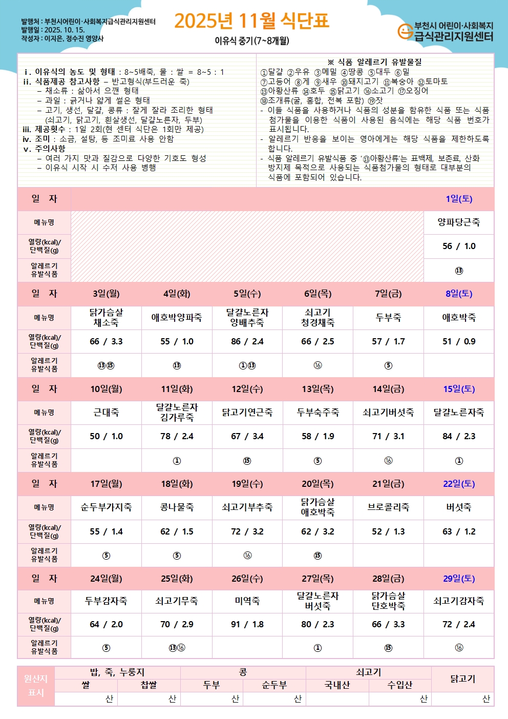 [이유식 식단] 2025년 11월 식단표 이유식 중기 식단