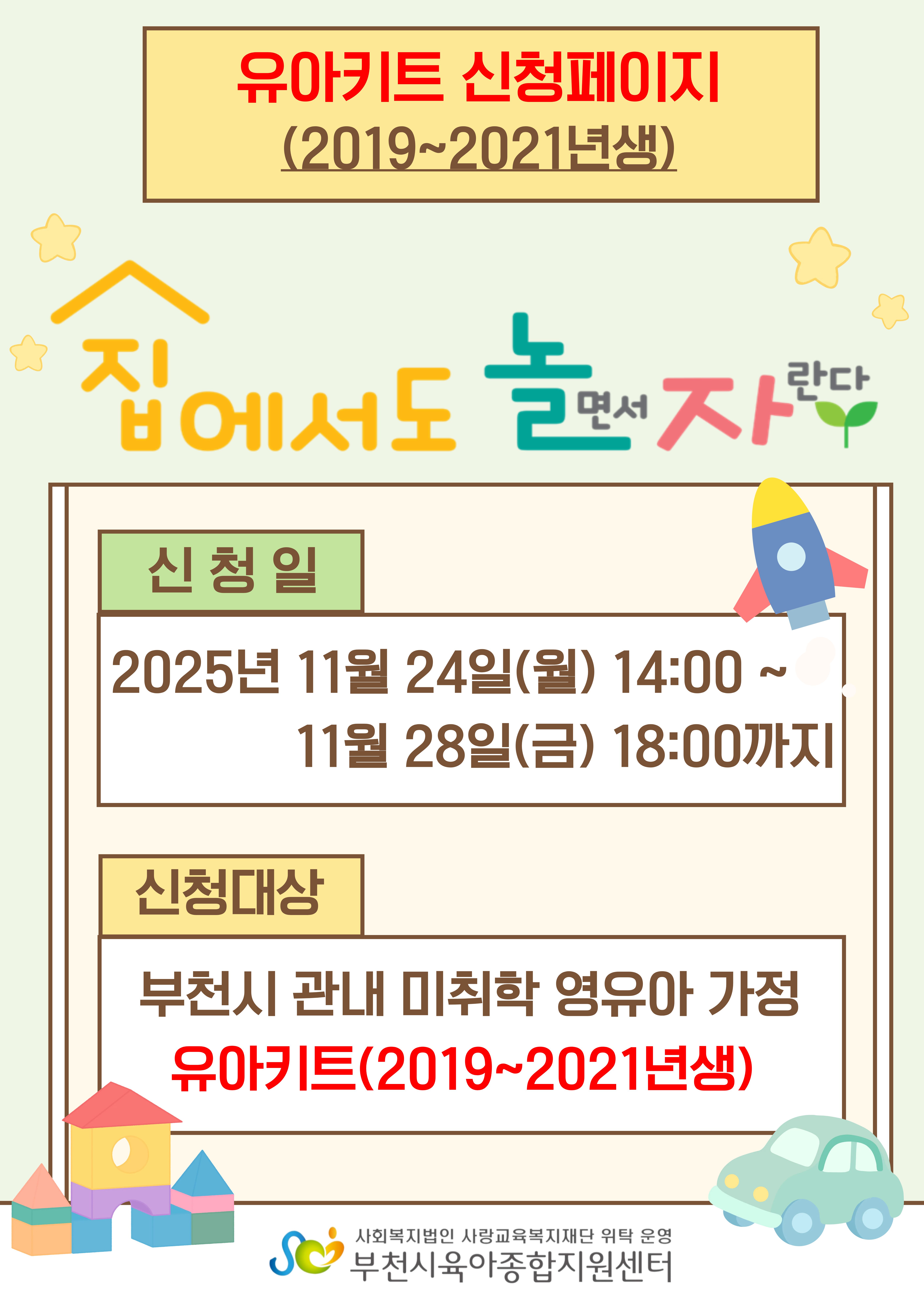 하반기 집에서도 놀(면서) 자(란다)! 놀이키트 신청(유아키트, 2019~2021년생) 2025.11.24(월) 14:00 ~ 18:00