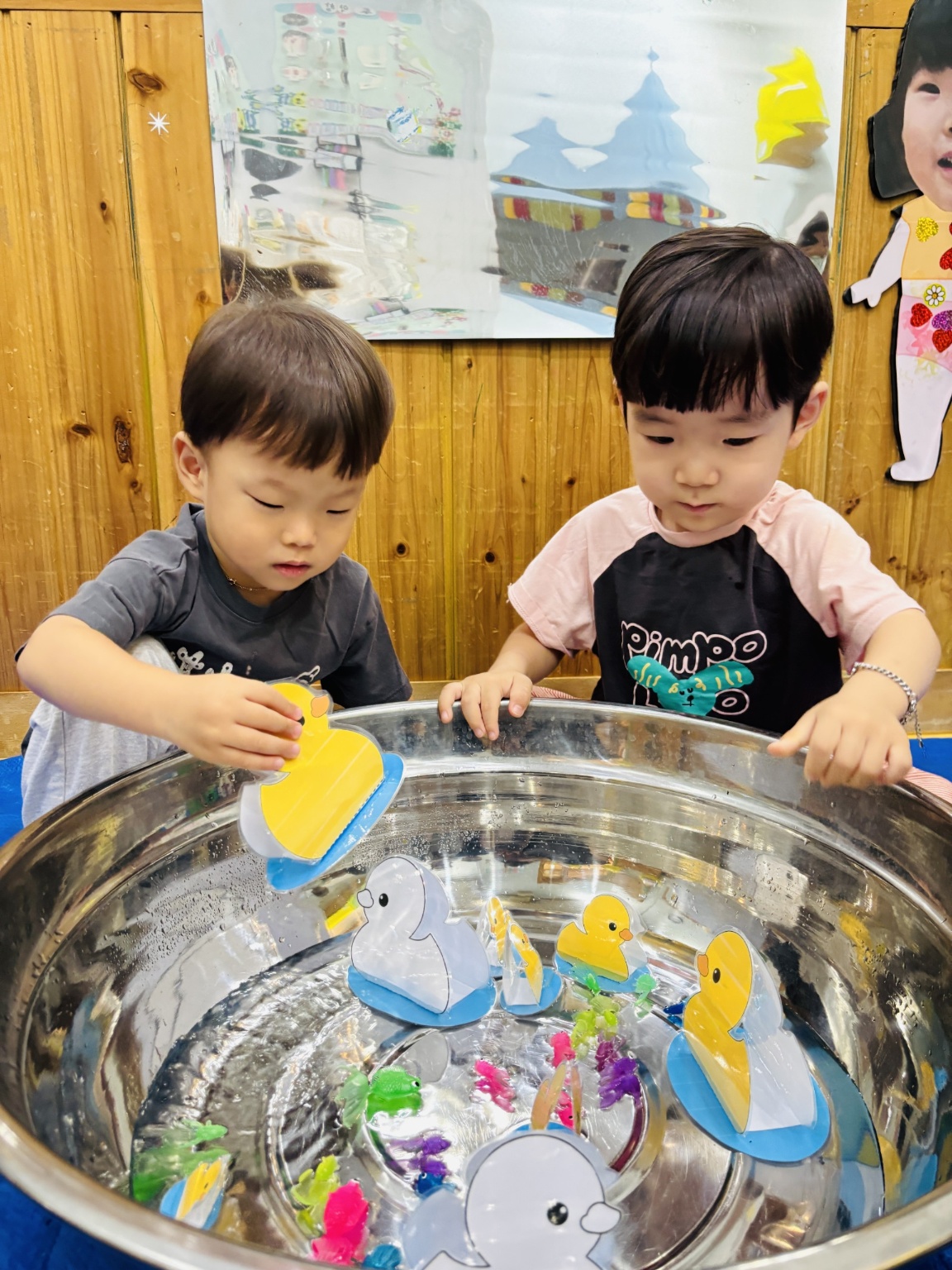 되똥되똥 꽥꽥 작은 오리 책을 읽고 오리 친구를 자세히 알아보기 위해 연계활동으로 만1세 친구들 오리를 물에 띄어보기도 하고 거품에도 띄어보고 오리처럼 걸어서 오리풍선도 쳐 보며 책에서 만난 오리를 경험해 보았답니다.